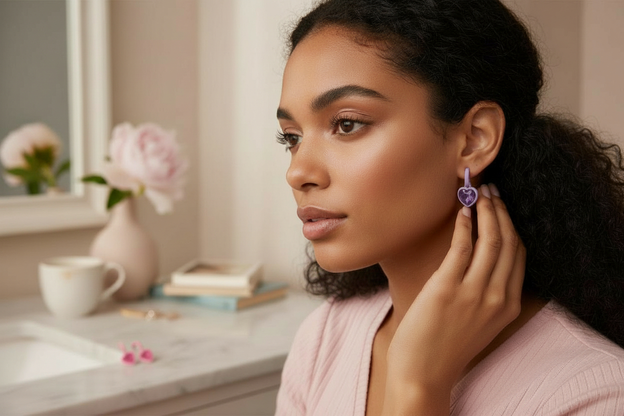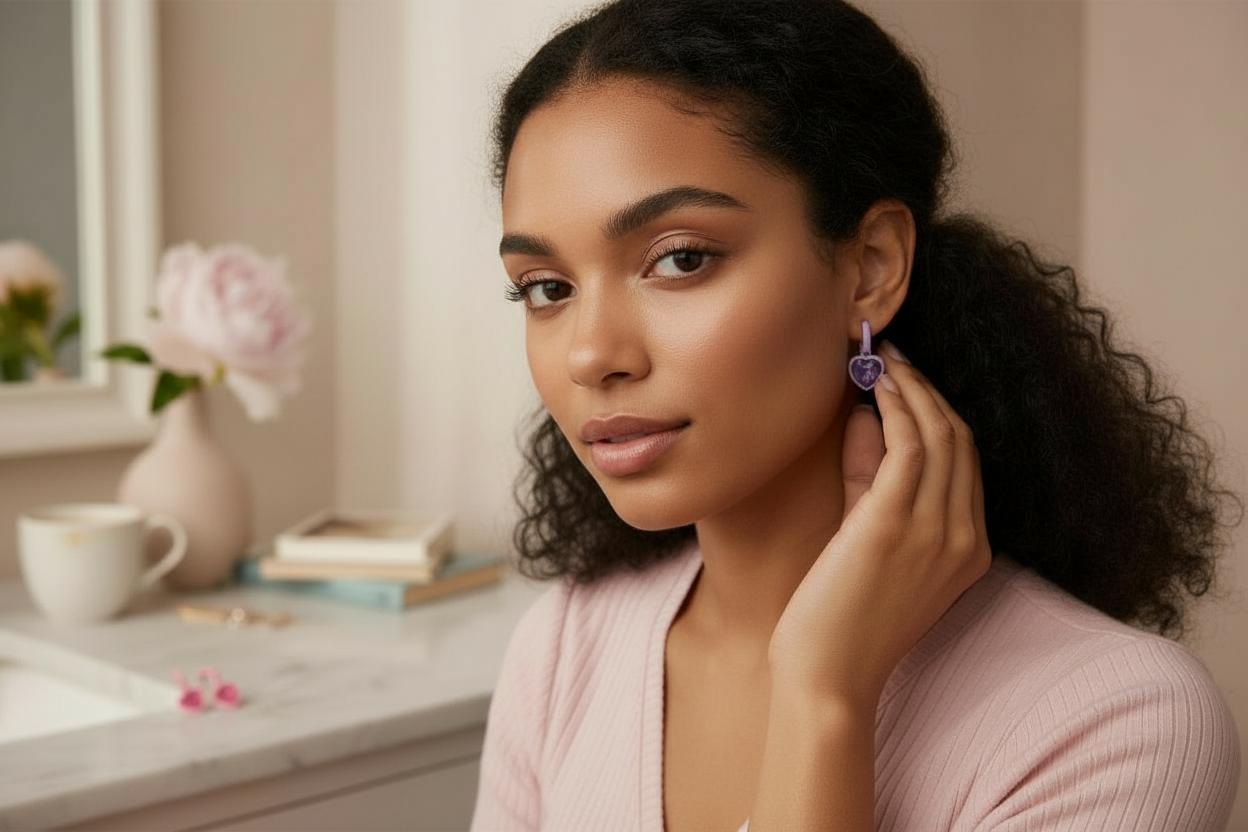Soft at first glance, bold at heart. The Savage Sweethearts earrings blend playful pink and purple heart details with a fearless edge, made for the woman who leads with love but never loses her bite. Lightweight and eye-catching, these earrings add a pop of color and confidence to everyday looks or Valentine's night plan!